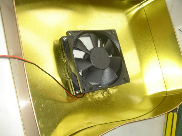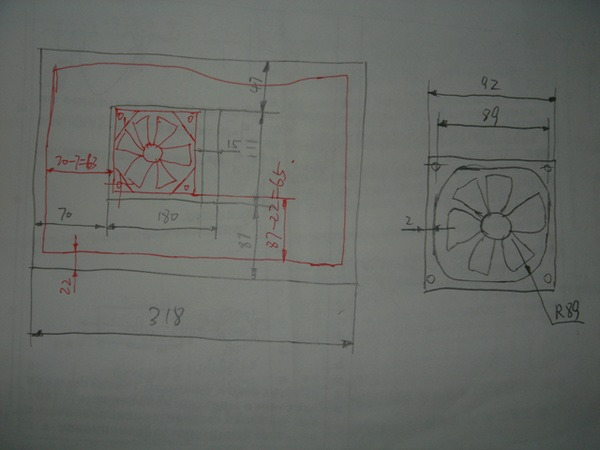 初步完成了。接上電源大概試了一下,我擔(dān)心的事情發(fā)生了——由于四下都密封,所以風(fēng)扇沒有進風(fēng)道,轉(zhuǎn)得很猛但風(fēng)不大。