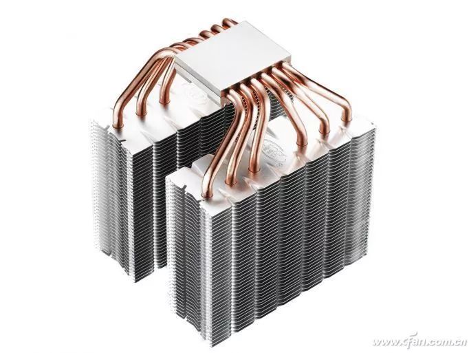 有關(guān)散熱鰭片材質(zhì)的爭議始終沒有停歇過,如果可以解決銅質(zhì)熱管與鰭片之間的熱阻問題,那鋁質(zhì)的散熱鰭片要優(yōu)于銅,因為前者的熱容遠大于銅,相同面積可以吸收更多熱量,而這也是為什么高端臺式機散熱器都會采用大面積的鋁鰭片,并使用大量熱管均勻地插在鋁鰭片的不同位置上。