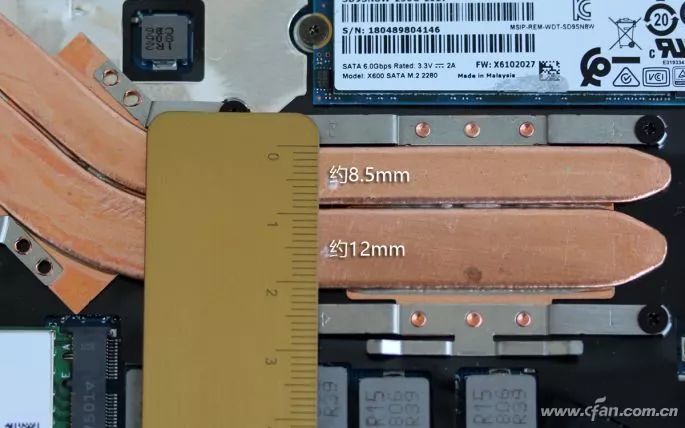 現(xiàn)實中,輕薄本的“空間危機”已經(jīng)非常嚴(yán)重,散熱鰭片的面積更是越來越小,甚至淪落到與熱管一樣寬,長度也只有40mm左右。