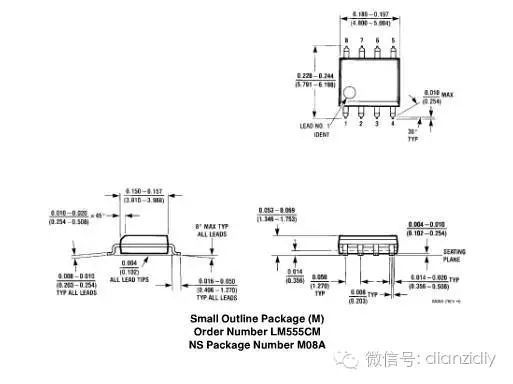 控制芯片選用了SOP8貼片封裝的LM555時(shí)基電路來(lái)完成,這個(gè)逆天的牛叉芯片可以廣泛的作為控制電路使用,各種電路非常多,大家可以參照其PDF文檔選用。
