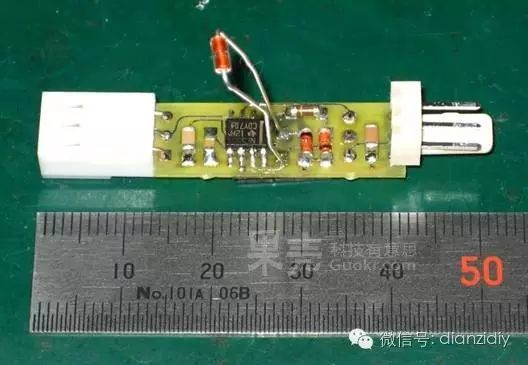 在原來(lái)的皮管里面穿兩根線(xiàn),作為熱敏電阻的連線(xiàn)。