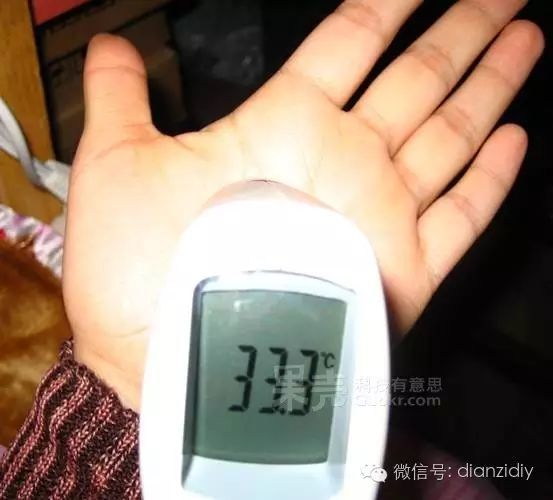 手心的表面溫度大概是33.3攝氏度,把熱敏電阻拿出來(lái),用手心捂住,穩(wěn)定一會(huì),測(cè)試結(jié)果如下: