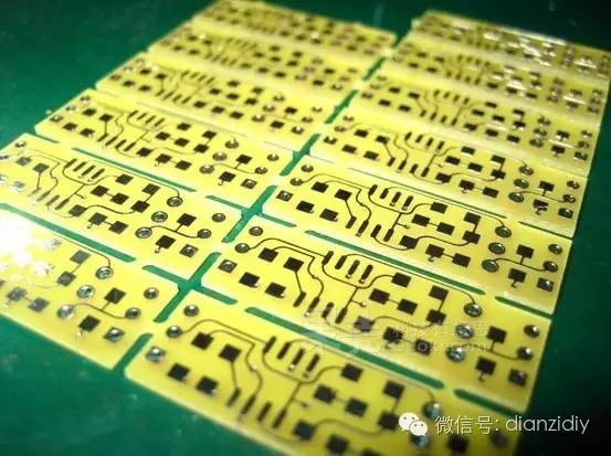 雙面裸板,沒(méi)有做阻焊,只做了過(guò)孔。銅箔實(shí)際上是鍍錫的,銀色閃亮的,因?yàn)榕臄z的緣故變身包公了。因?yàn)槎际琴N片,焊接起來(lái)比較費(fèi)眼神,當(dāng)然對(duì)于熟練工是我來(lái)說(shuō)還是完全沒(méi)問(wèn)題的。速度焊接起來(lái)。
