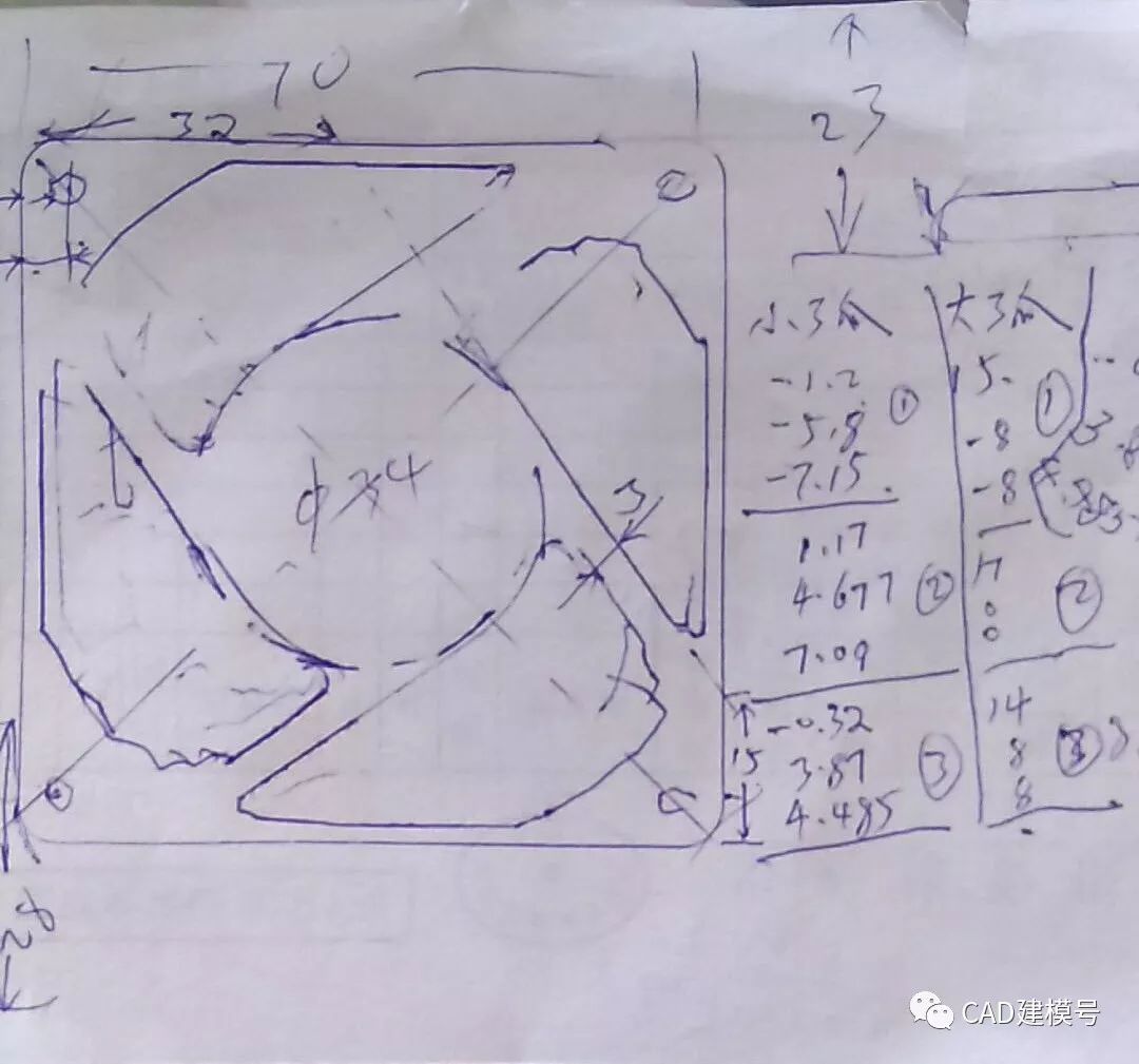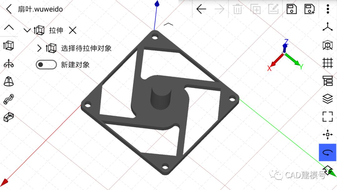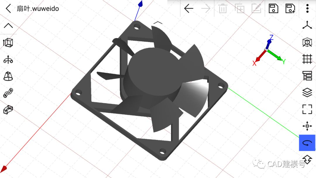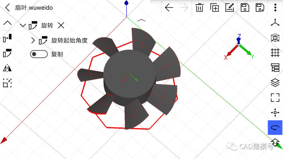 這里說下,為了顯示葉輪及葉面的效果,和測繪的需要,特地把風(fēng)扇的四周部分去掉了。