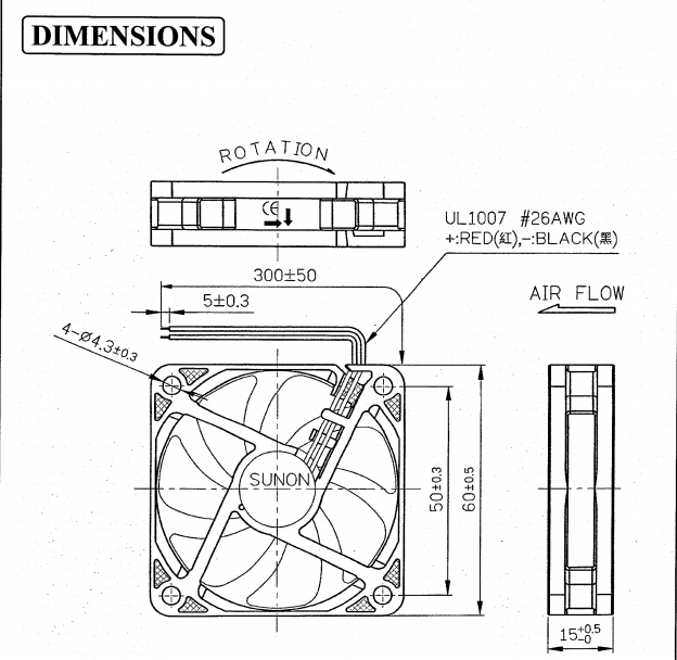 Size (mm) Air Flow (CFM) Size (mm) Air Flow (CFM) 50x50x15 2.6 ~ 5.4 97x94x33 22.4 ~ 30.5 50x50x20 4.8 ~ 5.7 97x95x33 44.2 ~ 54.7 60x60x15 3.9 ~ 5.7