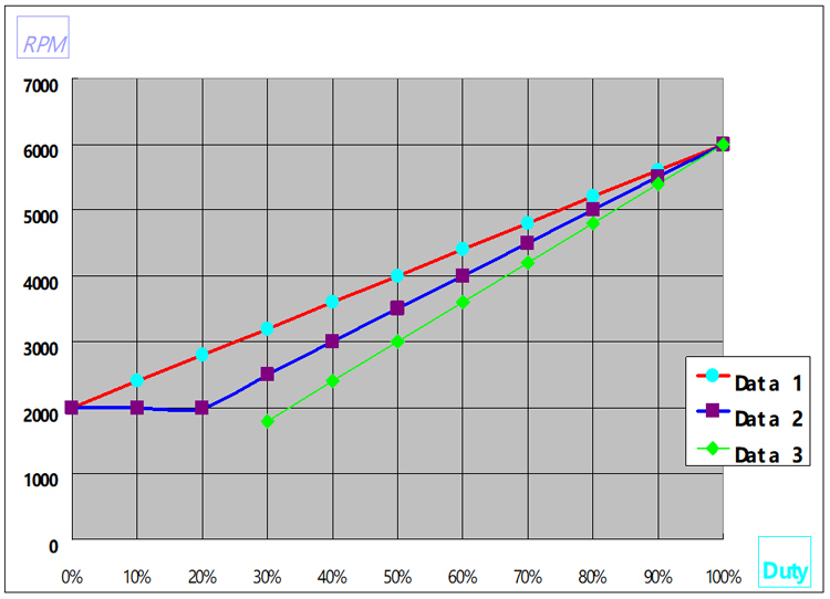 風(fēng)扇轉(zhuǎn)速 v.s. PWM 曲線 : (例)