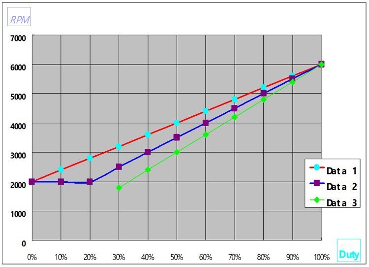 風(fēng)扇轉(zhuǎn)速 v.s. PWM 曲線 : (例)