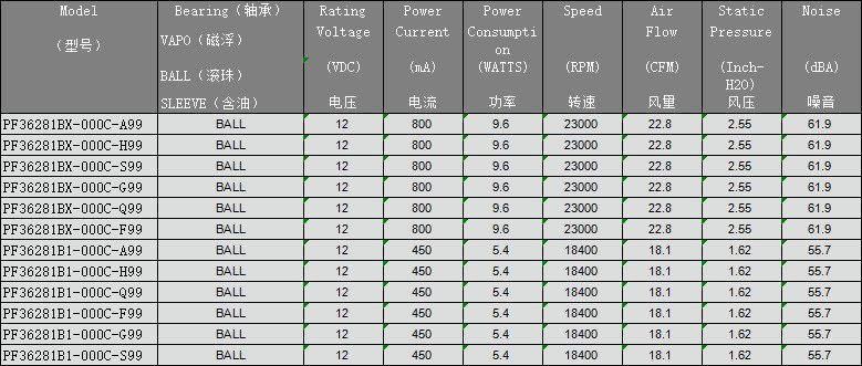 PF36281BX-000C-H99直流散熱風扇,是建準自主研發(fā)的產品DR MagLev (Dust-Resistance MagLev )防阻微塵磁浮馬達風扇。該MagLev新科技框架式結構,可防止馬達定子、扇葉移位脫落,具有阻隔微塵效果、更高信賴性和更長壽命;適用于汽車電子、船舶、無人機、光電、軍工、網(wǎng)通等產業(yè)客戶的散熱設計;是各科技企業(yè)率、大批量生產加工的理想選擇。Sunon風扇具有低噪音,長壽命的特點。