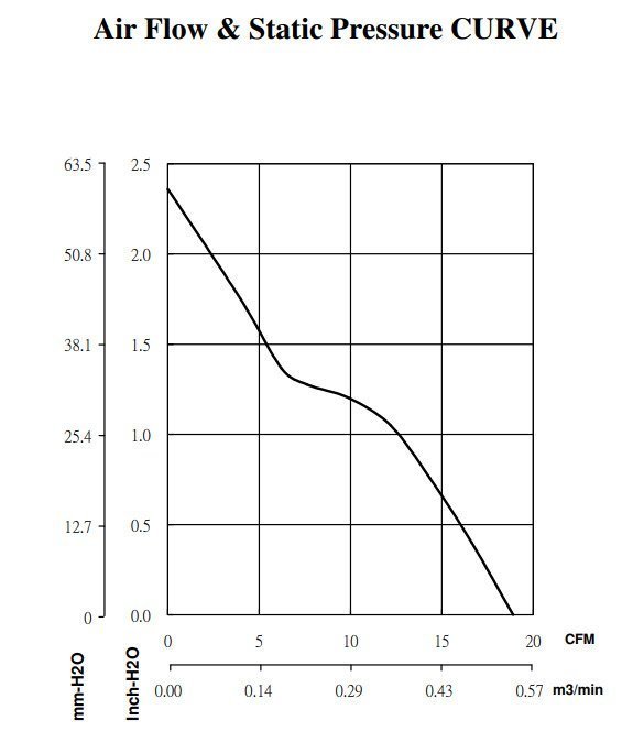 Size (mm) Air Flow (CFM) Size (mm) Air Flow (CFM) 17x17x8 0.7 ~ 0.9 60x60x15 10.8 ~ 21.0 20x20x8 1.3 ~ 1.6 60x60x20 16.0 ~ 30.5 20x20x10 1.5 ~ 1.9